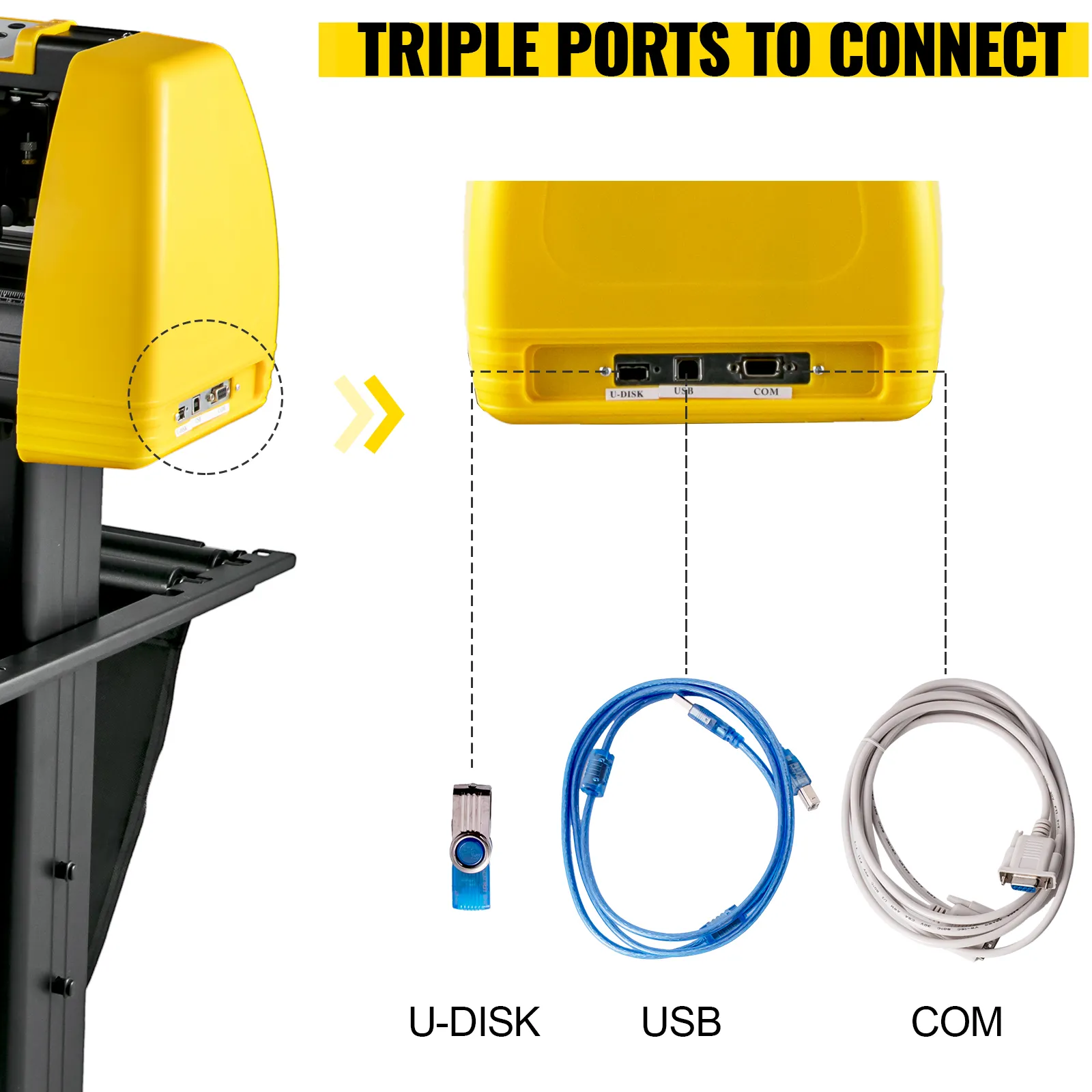 Conecte el vinilo cortador plotter a través de tres puertos disponibles, COMPIM, USB y U-Disk. Una supermemoria de 128 MB que logra un corte fuera de línea durante mucho tiempo y es compatible con el almacenamiento de datos. Compatible con múltiples sistemas informáticos como Windows XP / VISTA / 7/8/10 (32 y 64).