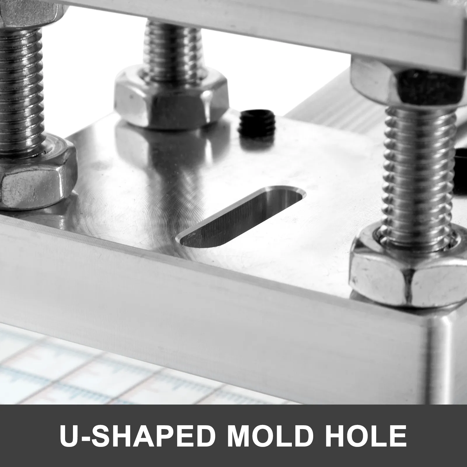 El mango lateral es de acero inoxidable, duradero y difícilmente deformable, la parte negra en la parte superior es antideslizante eficazmente, hace que el proceso de estampación sea más seguro y conveniente.