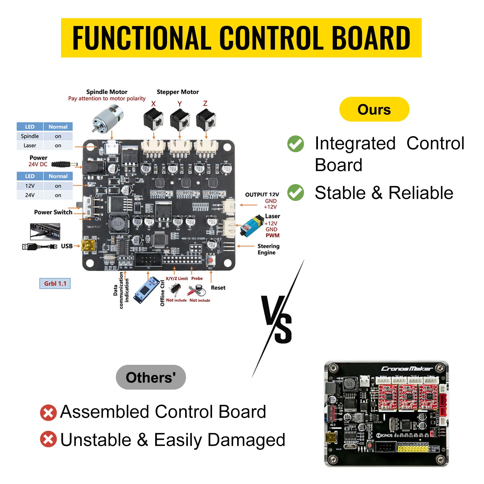 La placa de control Mach 3 podría conectarse a través de una interfaz USB a una computadora. Cuenta con una funcionalidad completa y puede orientarse hacia un uso duradero.