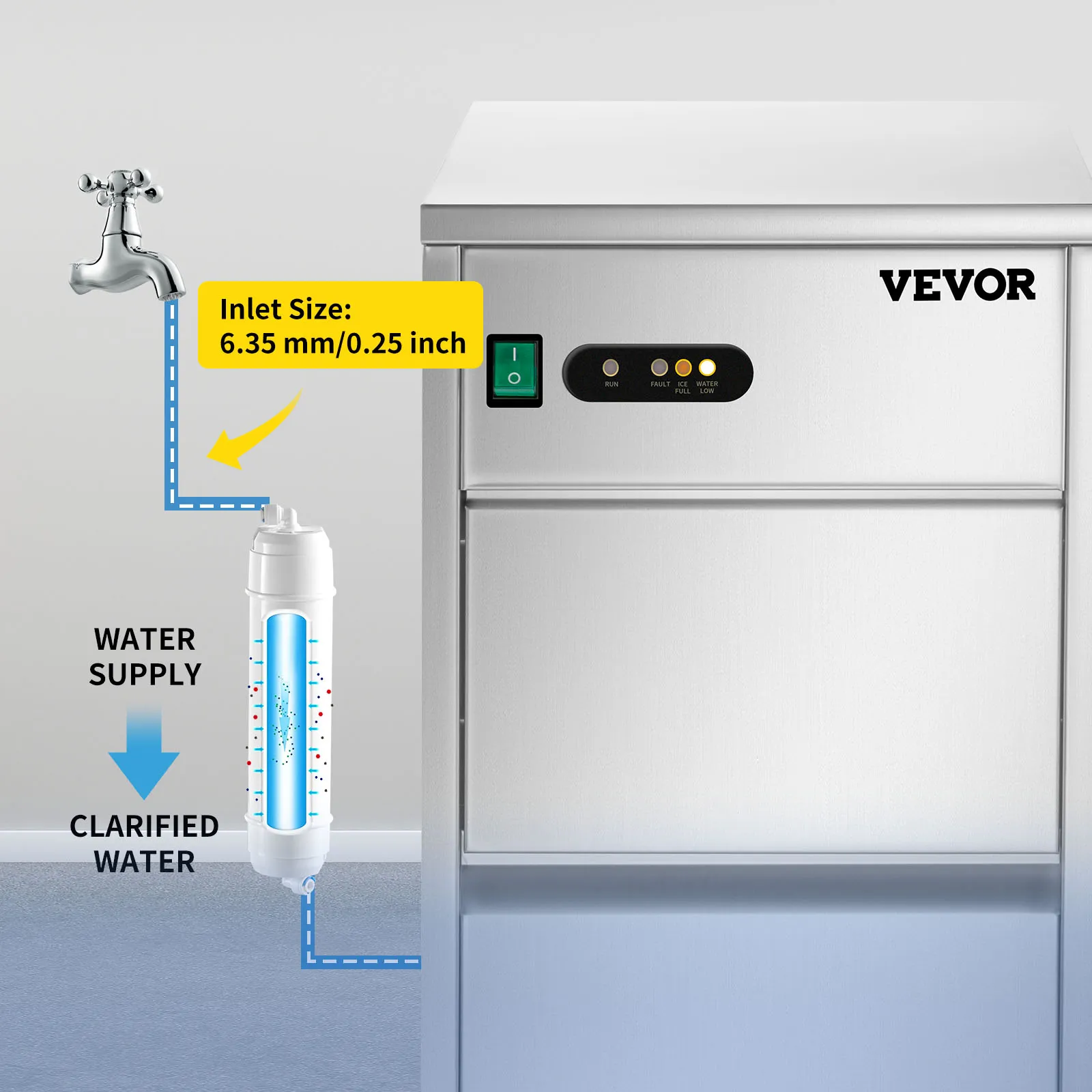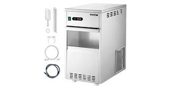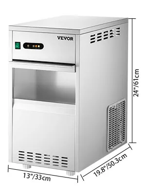 Esta máquina de hacer hielo picado produce 44 lbs (20 kg) de hielo cada 24 horas. 11 lbs (5 kg) suficiente almacenamiento de hielo.