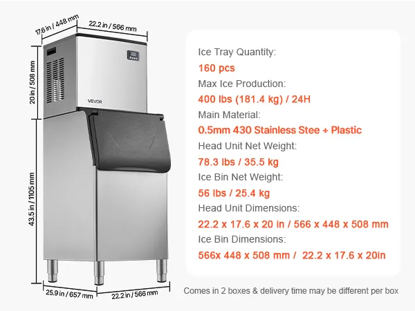 Gran producción de hielo: Esta máquina de hielo puede producir 181,4 kg de hielo por 24 horas, con una gran capacidad de 136 kg y un excelente aislamiento, lo que garantiza un suministro continuo de hielo