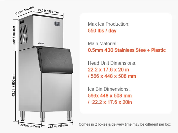 La máquina de hielo suele constar de dos partes principales: la unidad principal y el depósito de hielo. Este diseño ofrece mayor flexibilidad y eficiencia, lo que las hace ideales para negocios, cocinas domésticas o aplicaciones especializadas.