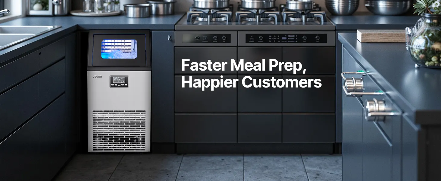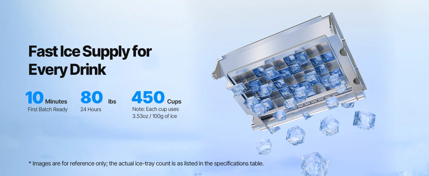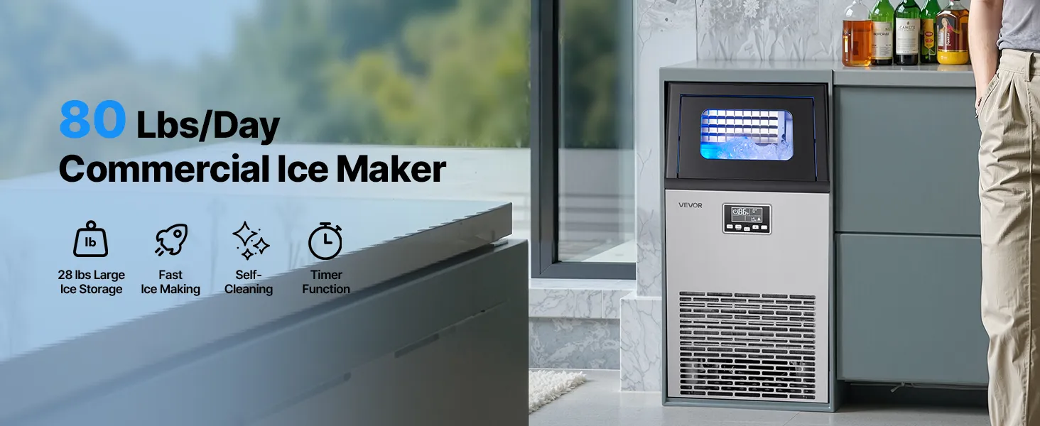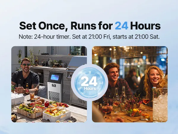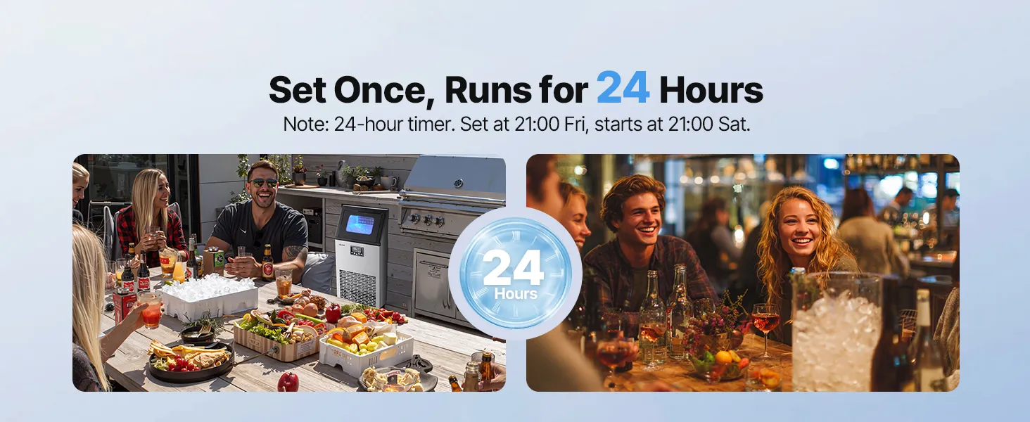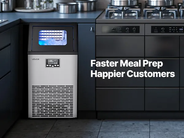 Instalación rápida: No requiere retirar la película; esta máquina de hielo bajo encimera está lista para usar. Independiente o empotrada, su elegante diseño se integra a la perfección en cocinas, bares o cualquier espacio que requiera una ubicación flexible