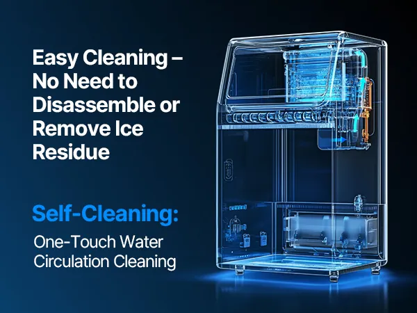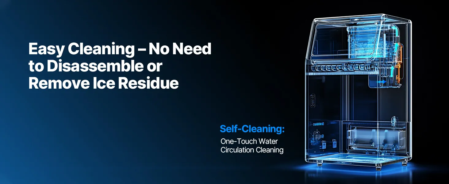 Fácil de limpiar: Esta máquina de hielo autolimpiable ejecuta un ciclo de enjuague automático de 20 minutos con solo presionar el botón "Mode" durante 3 segundos