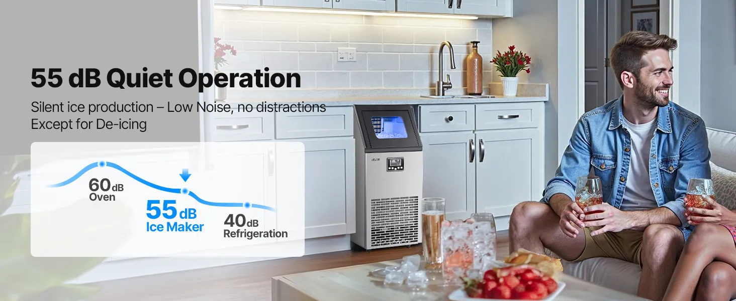 Silenciosa y con Aislamiento: Esta silenciosa máquina de hielo cuenta con un compresor silencioso (≤55 dB) y un aislamiento de 2 cm de grosor para mantener el hielo frío por más tiempo. Disfrute de hielo fresco y un ambiente tranquilo, sin interrumpir su hogar ni su lugar de trabajo