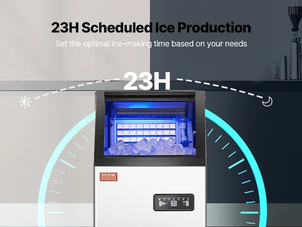 Nuestra máquina de hielo comercial produce 110 libras (aprox. 49,9 kg) de cubitos de hielo por día, y la función de aislamiento de 8 horas le permite tener cubitos de hielo cuando lo desee.