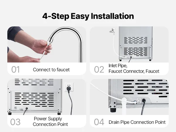 Dos formas de agregar agua y autolimpieza: La máquina de hielo tiene dos entradas de agua, que se pueden conectar directamente al grifo o al agua embotellada. Tiene una función de autolimpieza automática para una limpieza fácil, lo que garantiza un entorno de fabricación de hielo higiénico