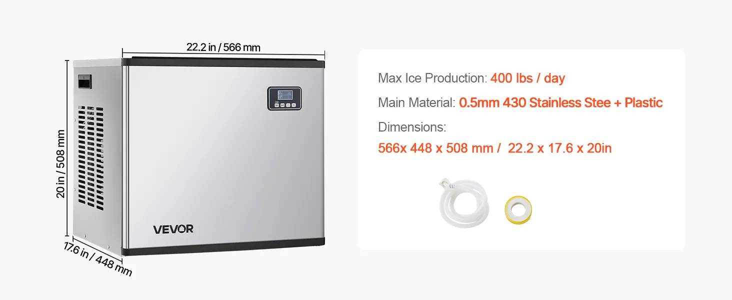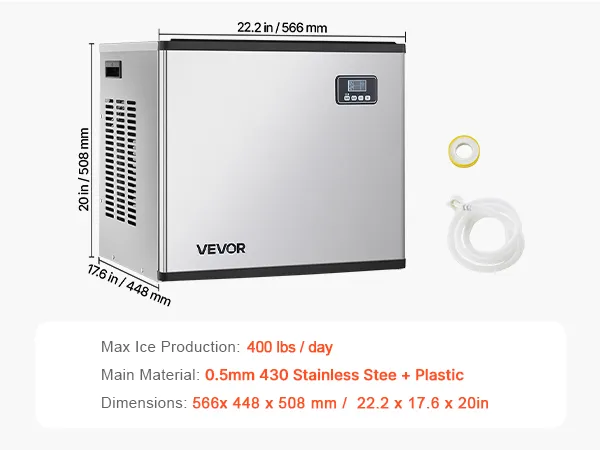 VEVOR Máquina para Fabricar Hielo Cabezal, 181 kg/Día, Acero Inoxidable, con Autolimpieza, Producción Programada de Hielo y Grosor Ajustable, para Restaurantes, Bares, Hoteles, 566 x 448 x 508 mm