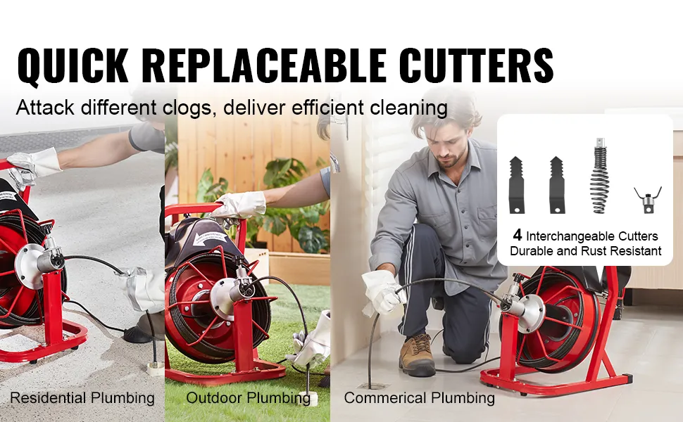 Realiza tu trabajo de manera eficiente gracias a nuestras 4 cuchillas intercambiables. Ya sea para plomería comercial, uso residencial, restaurantes, fábricas o escuelas, el sinfín de alcantarillado VEVOR ofrece soluciones versátiles para una amplia gama.