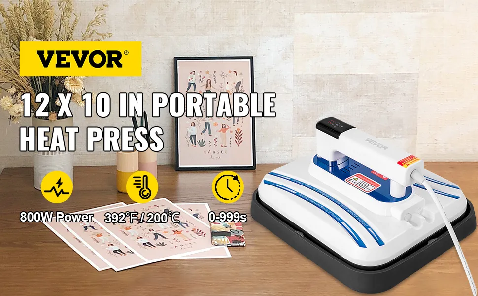 Prensa de Calor Portátil 12 x 10 Pulgadas