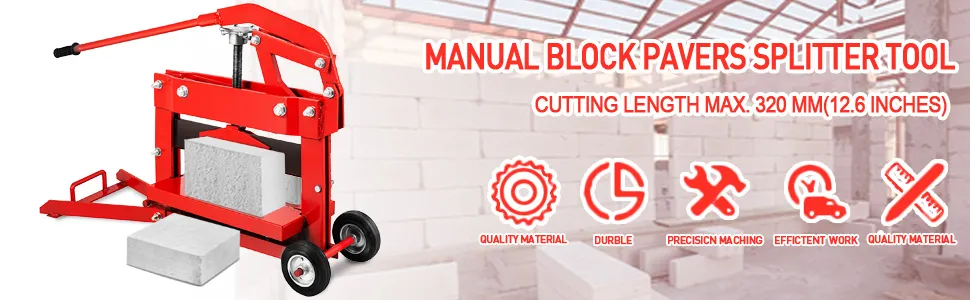 • 【DIVISOR DE BLOQUES MANUAL】- Esta cortadora de adoquines manual es una herramienta compacta, resistente y efectiva para dividir, recortar y cortar bloques de pavimento estándar. Longitud de corte máx. 320 mm (12,6 pulgadas), altura de corte máx. 140 mm (5,5 pulgadas), altura de corte mín. 25 mm (0,98 pulgadas).