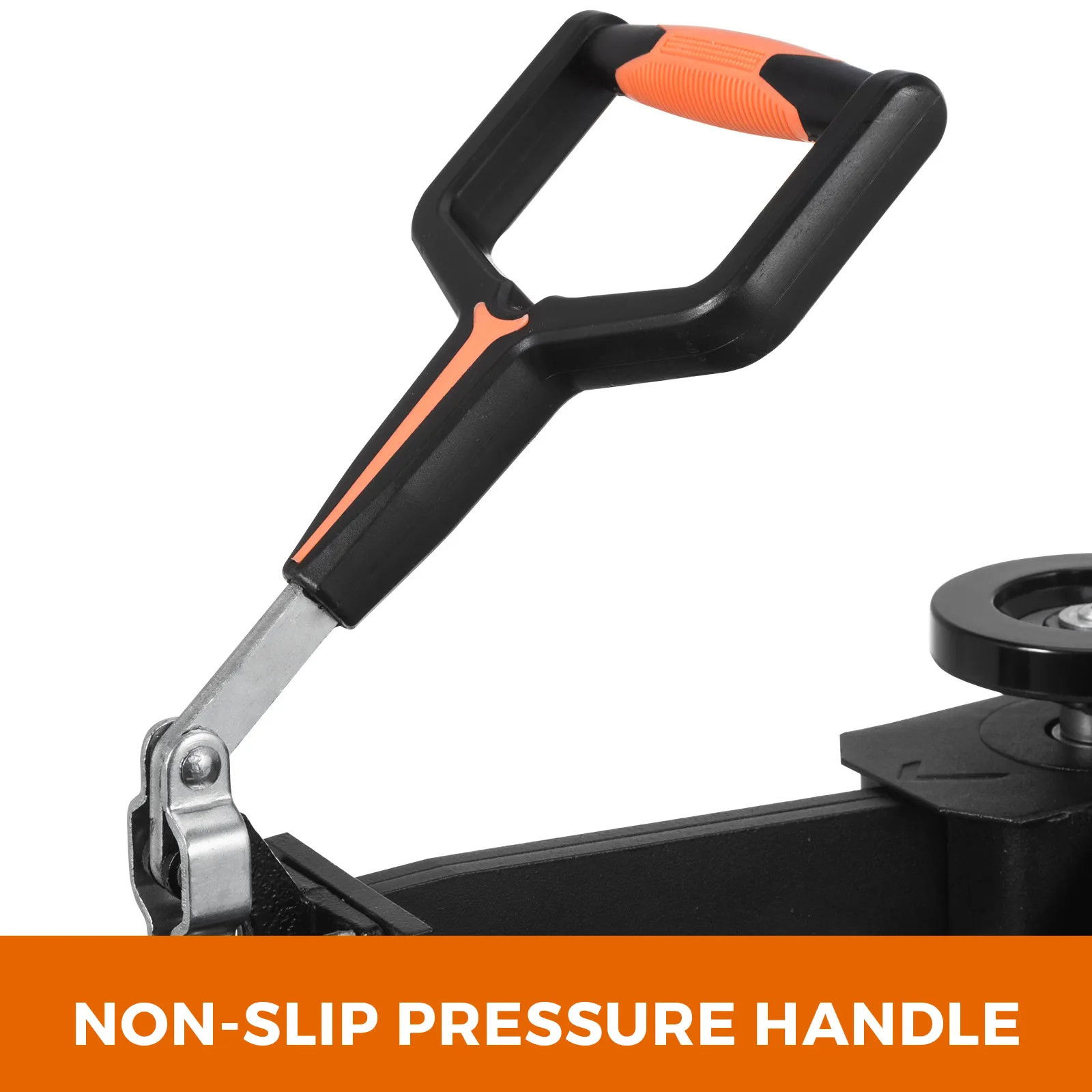 The spring press handle is equipped with yellow-colored rubber, which is designed to be antiskid. Besides, the handle is ergonomic, making operation easier and effortless.