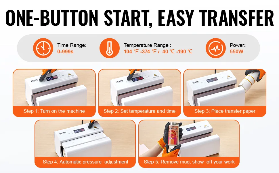 Nuestras tazas termoadhesivas son fáciles de usar. Con solo cuatro pasos, puedes completar una creación personalizada perfecta en minutos. Tanto principiantes como profesionales pueden usarla fácilmente para hacer rápidamente regalos únicos.