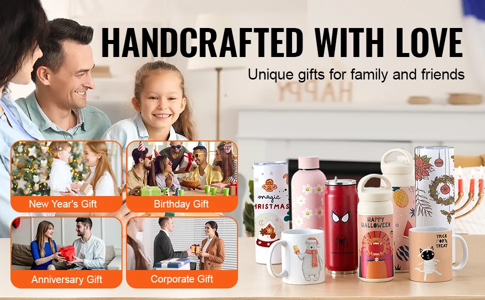 Utilice nuestra máquina de prensado de tazas inteligente para crear tazas personalizadas para familiares y amigos sin esfuerzo. Es perfecta para regalos de Año Nuevo, regalos de cumpleaños, regalos de aniversario y regalos de empresa.