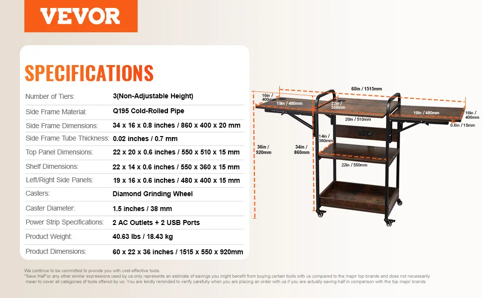 Este carrito para prensa térmica incluye una estación de carga adicional con dos puertos USB y dos salidas estándar, lo que le permite cargar varios dispositivos electrónicos a la vez, eliminando la necesidad de tomas de corriente de extensión adicionales.