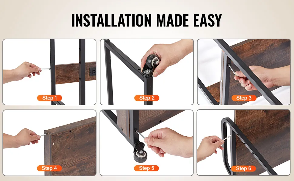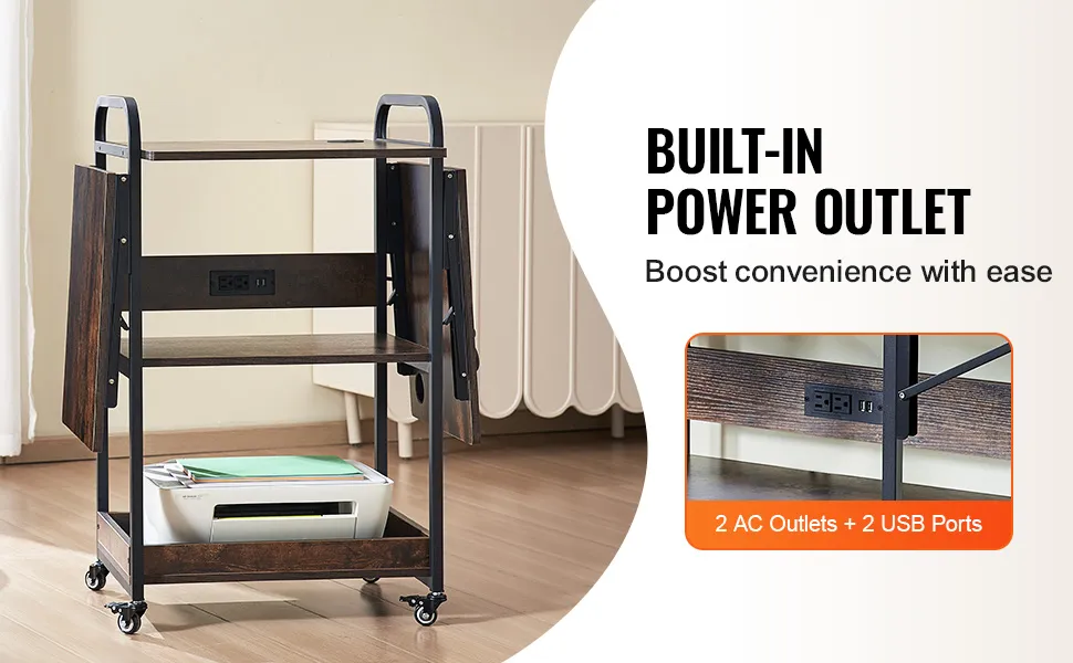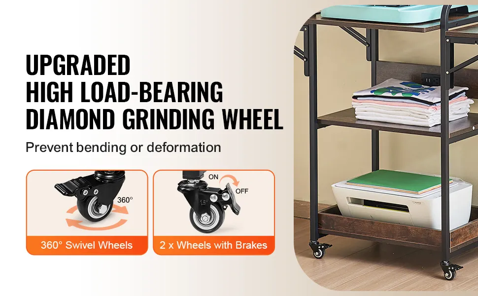 VEVOR Mesa de Prensa de Calor con Estación de Carga, Soporte de Prensa de Calor Móvil de 3 Niveles, Banco de Trabajo de Metal con Ruedas para Máquina de Transferencia de Sublimación, Marrón