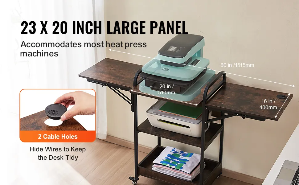Tamaño extra grande: nuestra mesa de prensa térmica con almacenamiento se adapta a la mayoría de las máquinas de prensa térmica, lo que proporciona un amplio espacio de almacenamiento para satisfacer sus necesidades de trabajo, perfecto para artesanos que necesitan almacenar numerosos suministros.