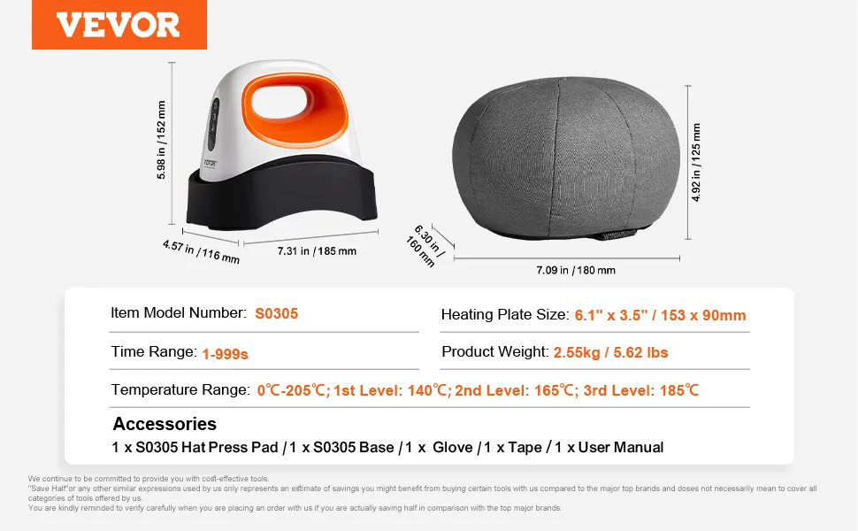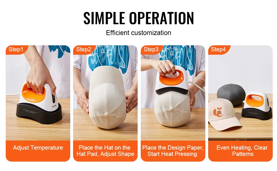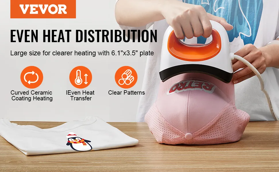 Transferencia de calor de precisión: esta prensa multifuncional para gorras facilita la personalización. Cuenta con un elemento calefactor curvo de 6,1" x 3,5" recubierto de cerámica que se adapta a la forma de la gorra para una distribución uniforme del calor, lo que garantiza transferencias nítidas y vívidas que magnifican su creatividad.