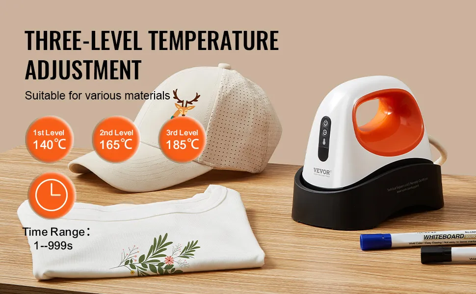 Los amplios ajustes de temperatura se adaptan a distintos materiales. La prensa térmica para gorras maneja fácilmente diferentes gorras, desde configuraciones de temperatura baja a alta, con tres niveles ajustables para un prensado preciso.