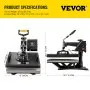 VEVOR heat press machine features portable handle, height adjustment button, durable base.