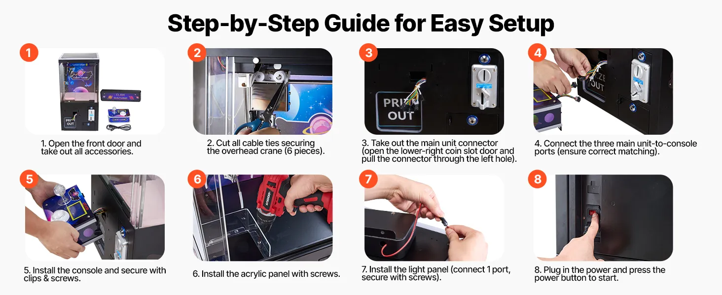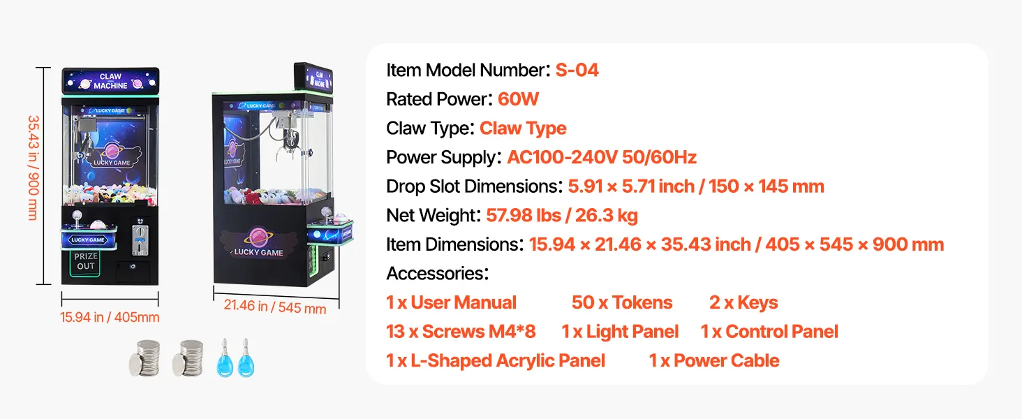 La máquina de garras viene con un manual de instrucciones detallado y todas las piezas necesarias, lo que permite incluso a los principiantes montarla rápidamente y disfrutar de una diversión sin fin.