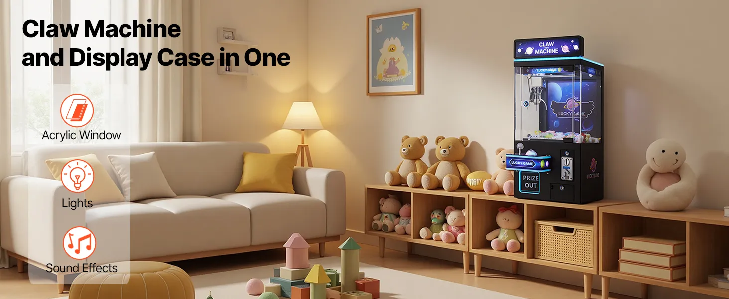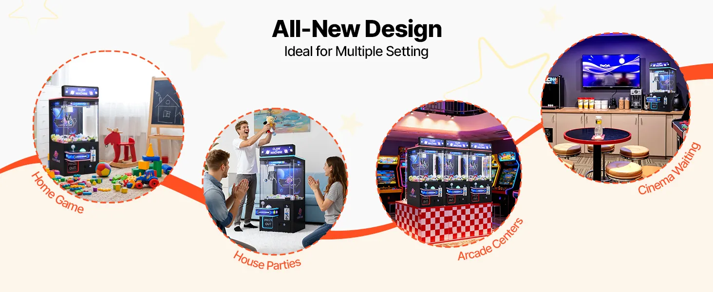 Con su elegante diseño, esta máquina de garras encaja a la perfección en salas de juegos domésticas, fiestas, salones recreativos o salas de espera de cines, añadiendo un toque lúdico y atractivo a cualquier espacio.