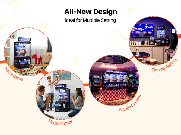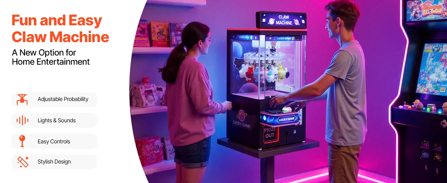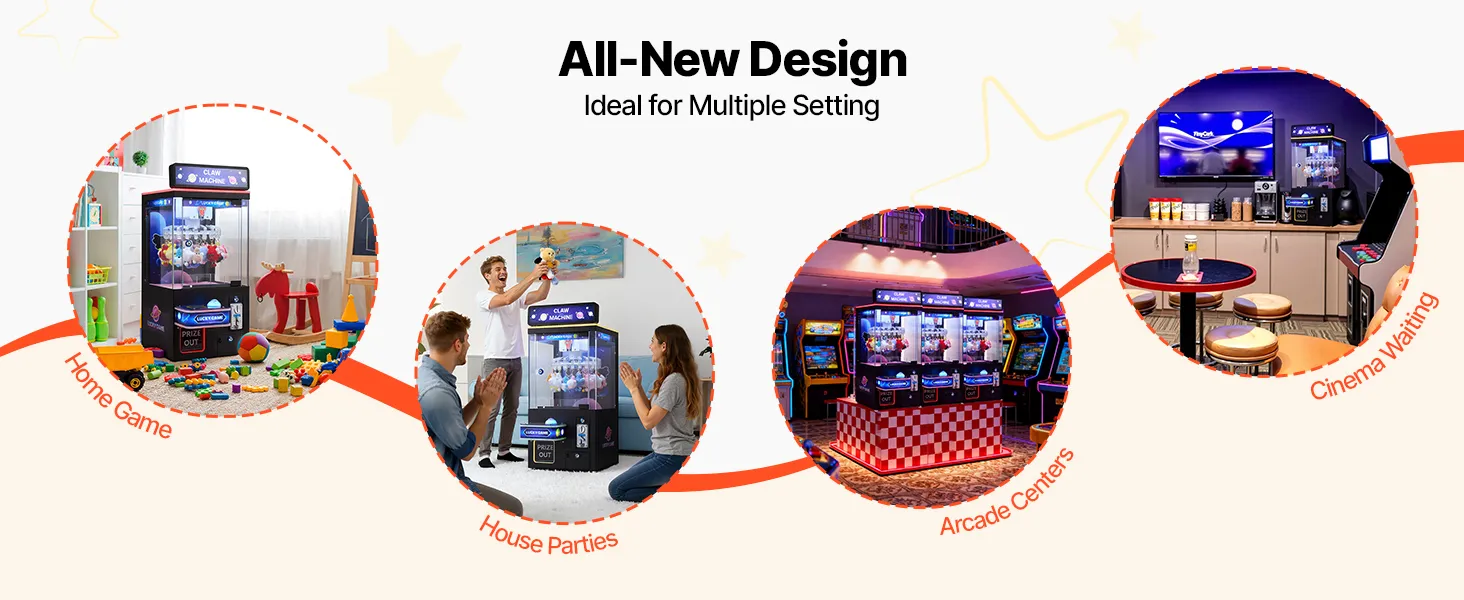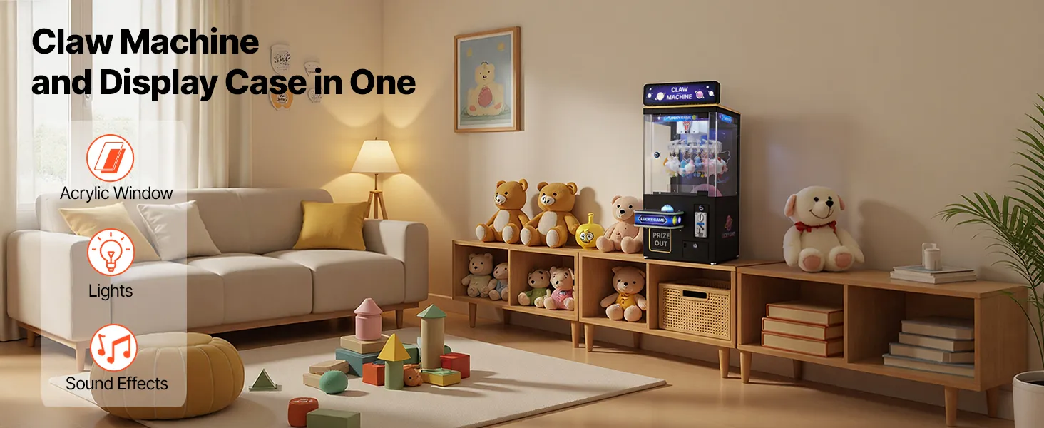 Con su elegante diseño, esta máquina de garras encaja a la perfección en salas de juegos domésticas, fiestas, salones recreativos o salas de espera de cines, añadiendo un toque lúdico y atractivo a cualquier espacio.