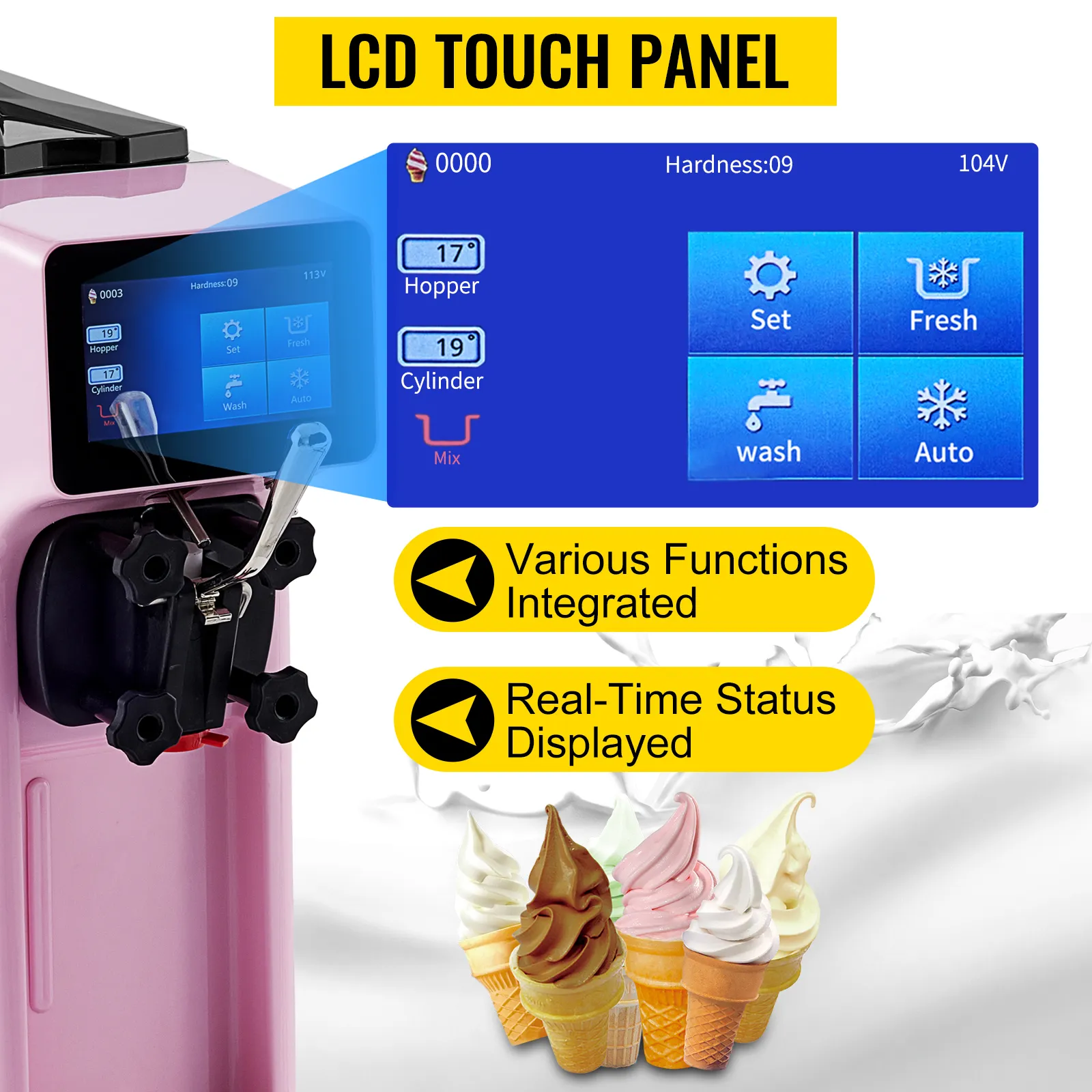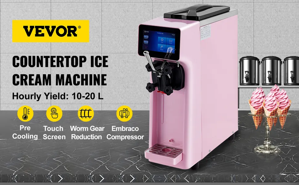 - Nuestra máquina de helado comercial es ideal para servir estilos suaves de helado, flan, yogur, gelato, sorbete, etc. Esta unidad económica tiene una tolva de mezcla de 4,5 L/1,2 Gal y un cilindro congelador de 1,6 L/0,4 Gal, que produce hasta 20 L/5,3 Gal de helado por hora (alrededor de 200 raciones). La pantalla táctil extra grande garantiza que siempre esté al tanto del estado de la máquina, y la operación simple hace que su negocio funcione sin problemas. Con todas las funciones que busca en una máquina de helados cremosos, esta es la elección perfecta para heladerías, panaderías, restaurantes, etc.