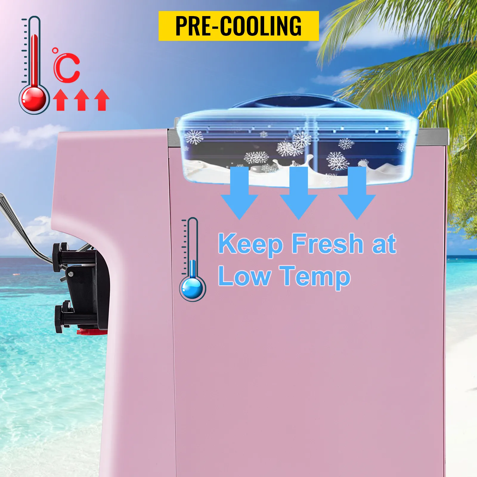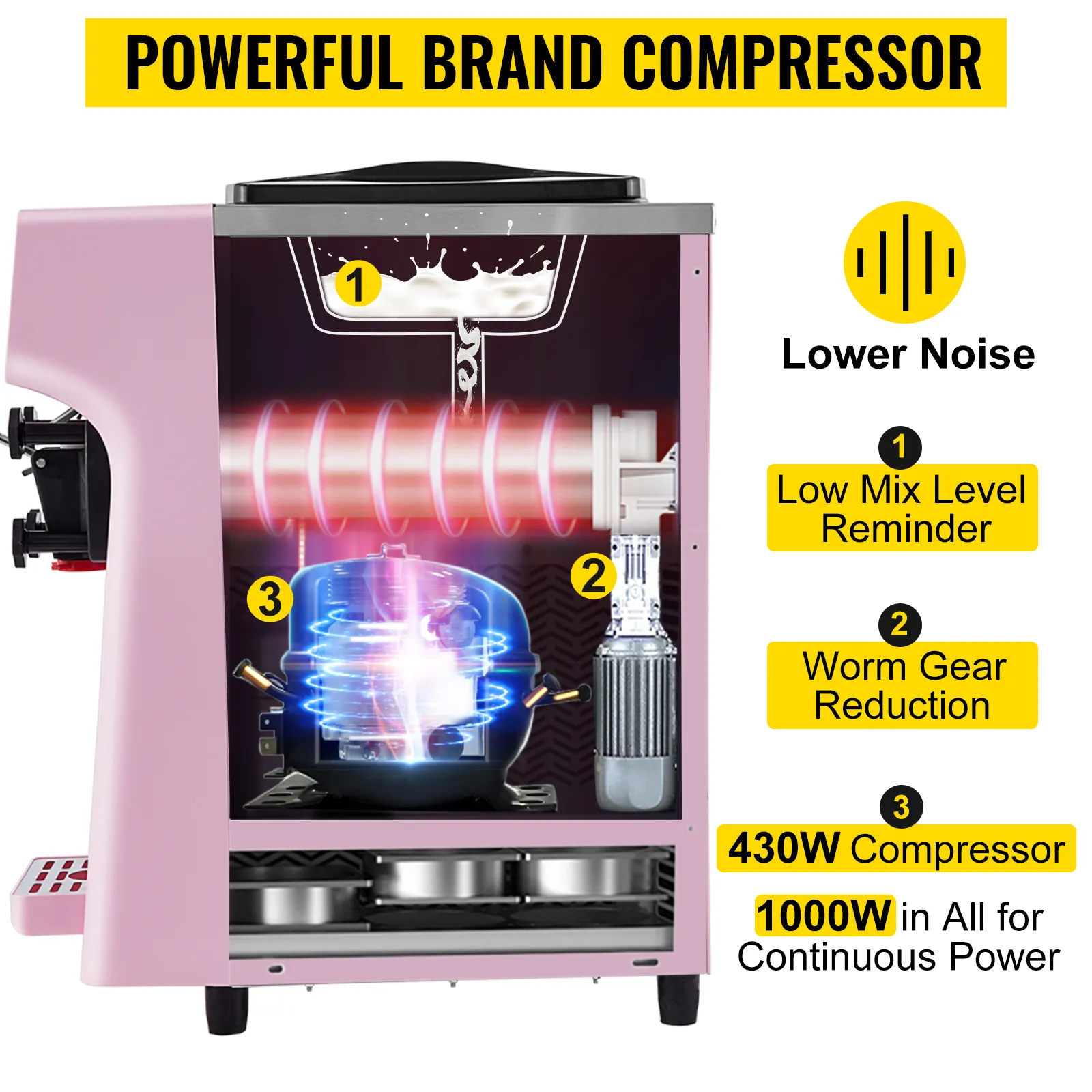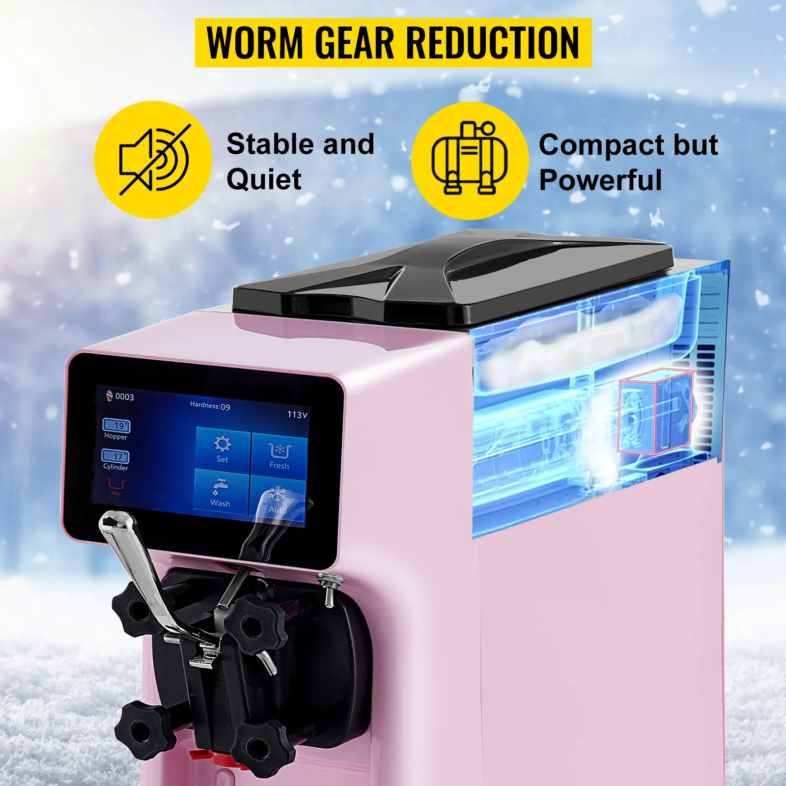 Equipada con una tolva de 4,5 L (1,2 galones) y un cilindro de 1,6 L (0,4 galones), adoptada en acero inoxidable 304, nuestra máquina para hacer helados suaves puede producir 10-20 L (2,6-5,3 galones) por hora. El contador incorporado muestra intuitivamente la cantidad de helados producidos por día. Se pueden dispensar alrededor de 10 piezas de forma continua y se hacen hasta 200 porciones en una hora.