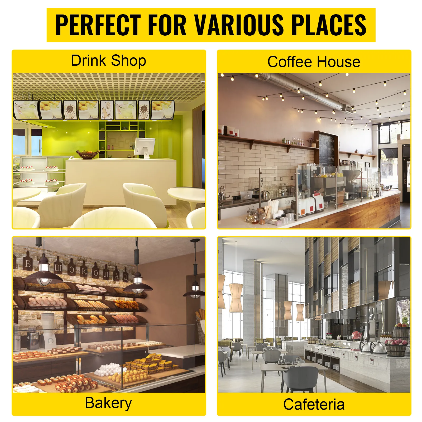 La tapa se adapta perfectamente a la tolva de mezcla y mantiene el polvo fuera de las mezclas. El mango de acero inoxidable es cómodo de agarrar y fácil de presionar. 3 grandes salidas de aire cubren toda la parte posterior, disipando el calor rápidamente y evitando daños por exceso de temperatura. La bandeja desmontable recoge el helado que gotea sin estropear la mesa. 4 pies de apoyo aseguran la estabilidad.