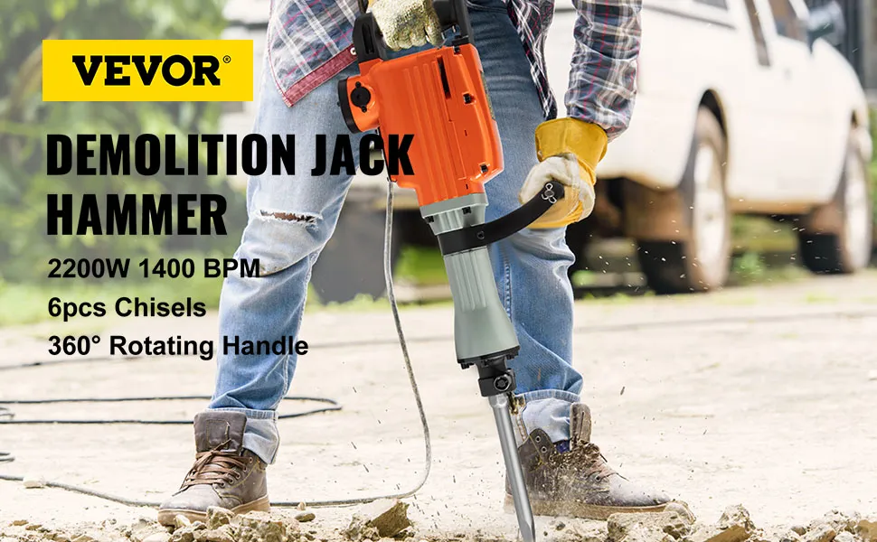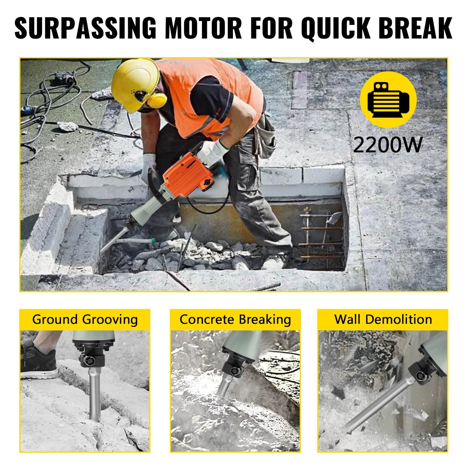 Vevor 2200w Martillo Demoledor 1400 Bpm Martillo De Demolición 6 Cinceles