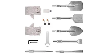 Nuestro martillo de demolición eléctrico de 2200 W con empuñadura delantera ajustable 360 ° proporciona control y comodidad adicionales durante un uso prolongado. Se caracteriza por una construcción resistente con grado industrial para una alta durabilidad. Además, tiene 6 cinceles para múltiples funciones y un mango en forma de D para absorber las vibraciones y reducir la fatiga del operador.