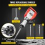 Hay 3 cinceles, todos forjados con acero de aleación de primera calidad tratado térmicamente. El mandril hexagonal de 1-1/8 " puede ensamblar y desmontar rápidamente los cinceles sin que se caigan accidentalmente.