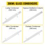 Todos los condensadores de vidrio tienen una capacidad de 300 ml. Los frascos de vidrio grueso con diferentes capacidades, frascos de gran capacidad de 250/500/1000ml pueden satisfacer las necesidades experimentales básicas.