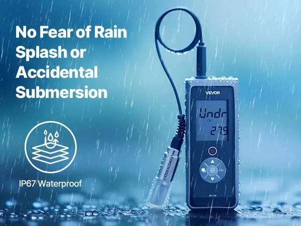 Resistente al agua IP67: El kit de prueba de oxígeno disuelto resiste salpicaduras e inmersiones accidentales. Su estructura estable garantiza un funcionamiento fiable en entornos húmedos, lo que lo hace ideal para trabajos de campo y aplicaciones de agua en laboratorios