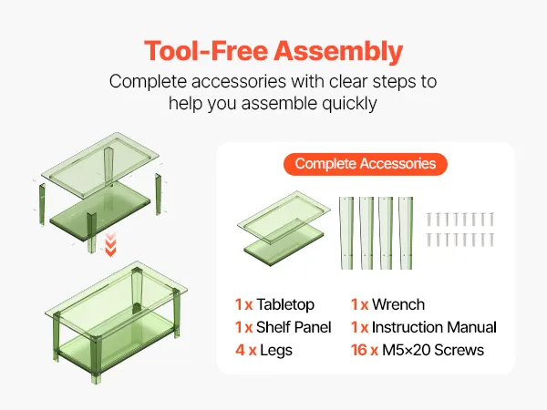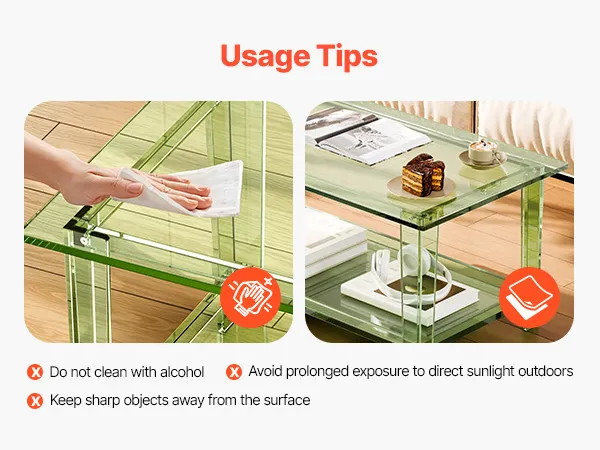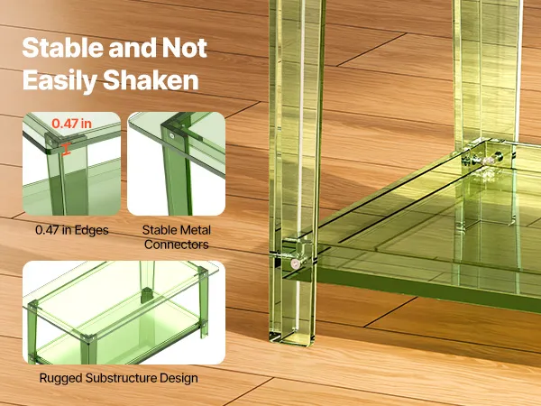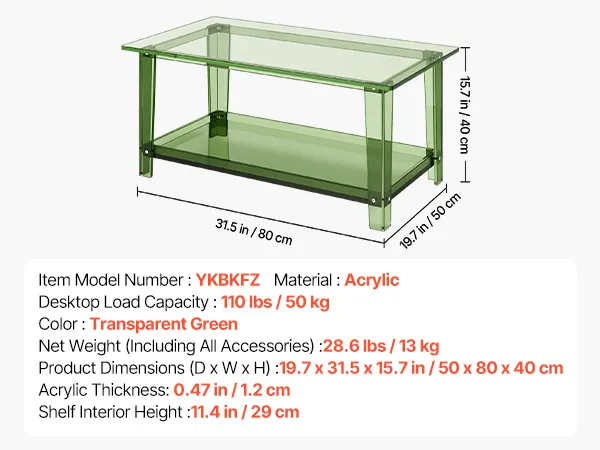VEVOR Mesa Auxiliar de Acrílico de 2 Niveles con Estante, Mesita de Noche 50 x 80 x 40 cm Rectangular Carga de 50 kg, Verde Transparente, Mesa de Centro Estable para Sala de Estar, Oficina, Salón