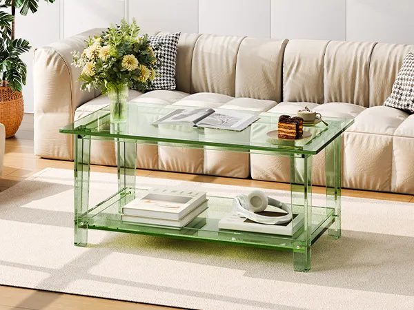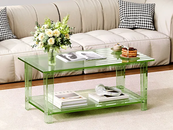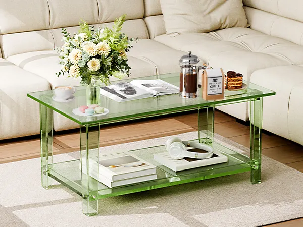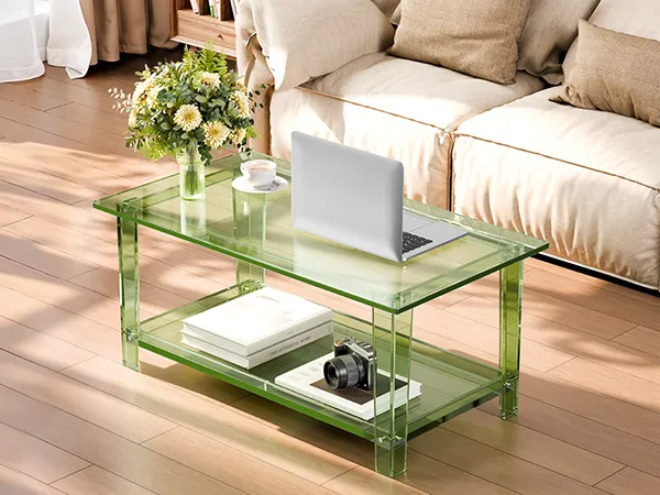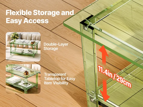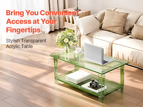 Doble espacio de almacenamiento: Esta mesa de centro de acrílico cuenta con un amplio espacio de almacenamiento de dos niveles para portátiles, libros, documentos y decoración. El tablero transparente ofrece una vista despejada, lo que facilita encontrar lo que necesitas; ideal como mesa de centro o escritorio para computadora