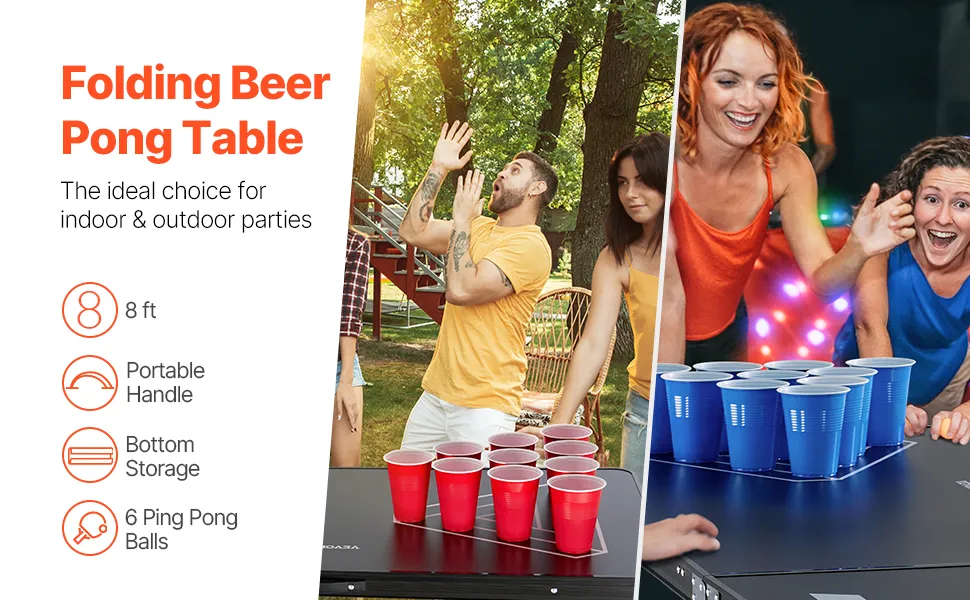 Mesa de beer pong portátil: Esta mesa de beer pong portátil viene con 6 pelotas de ping pong y un diseño de almacenamiento inferior, lo que ofrece una solución conveniente y divertida para sus fiestas y reuniones
