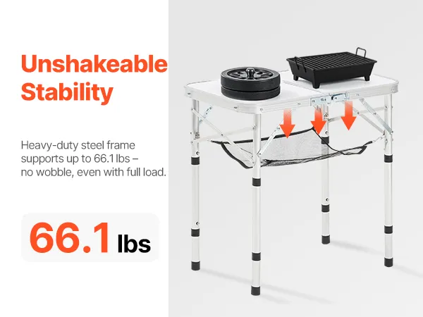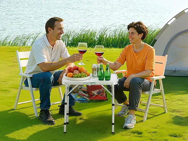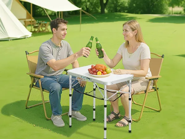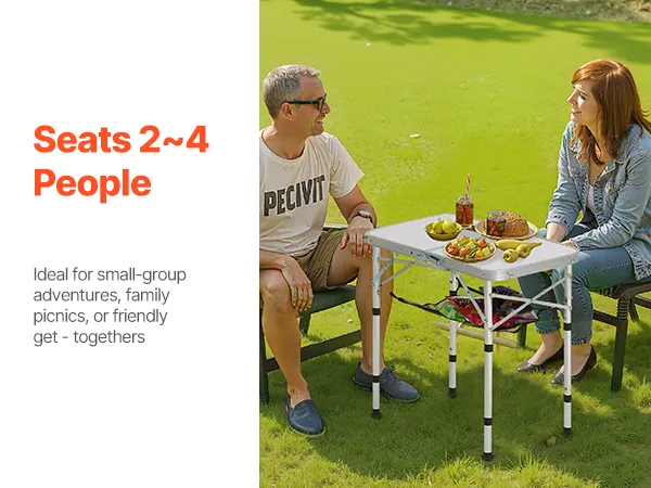 Altura de tres etapas: La mesa de camping se adapta a diversas ocasiones con ajuste de altura de tres etapas: 25,9/48/59,8 cm mediante patas ajustables. La mesa de 600 x 400 mm tiene capacidad para 2 a 4 adultos, ideal para cenas íntimas, reuniones o trabajos ligeros