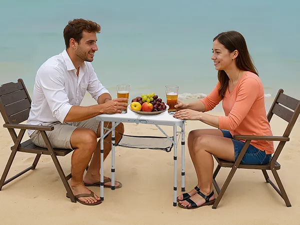 Superficie de MDF: El tablero de MDF resistente a rayones ofrece un acabado liso y elegante, ideal para reuniones informales en interiores o al aire libre. La mesa plegable para camping soporta hasta 30 kg y resiste impactos leves y el desgaste diario