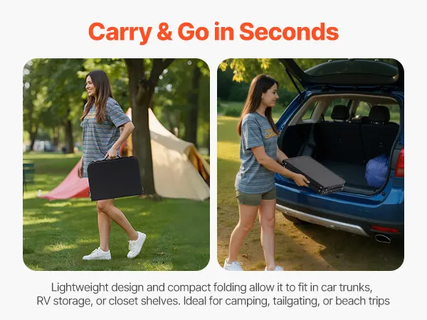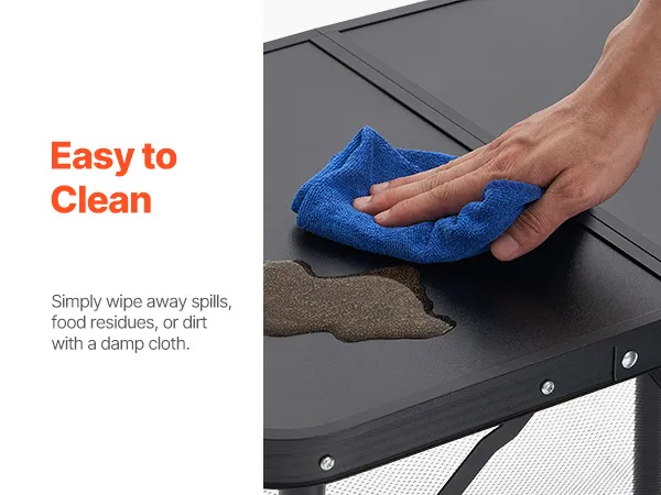 Cierre seguro y portátil: Los cierres dobles y las patas reforzadas mantienen la mesa pequeña de exterior estable, reduciendo el riesgo de caída accidental. Su diseño plegable con asa integrada facilita su transporte; cabe en el maletero del coche o en el armario