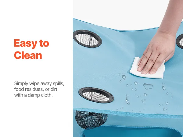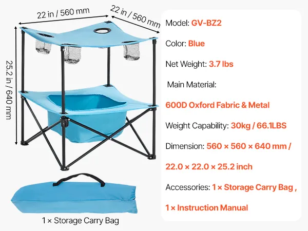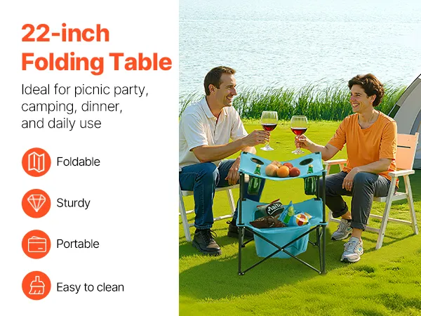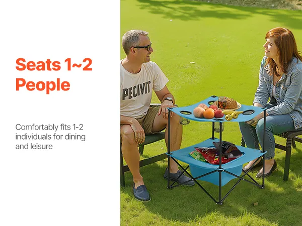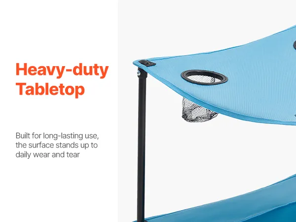 VEVOR Mesa de Camping Plegable Portátil y Ligera, para Exteriores, de Lona Oxford 600D, Impermeable, para Playa, con 4 Portavasos y Bolsa de Transporte, para Picnics, 560 x 560 x 640 mm, Azul