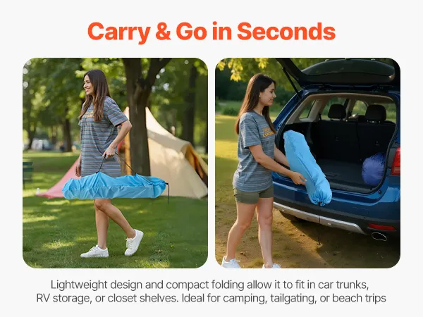 Montaje instantáneo: Montaje sin herramientas: despliega el cuadro, coloca la cubierta impermeable y bloquea las patas. Se pliega a 14,5 x 14,5 x 64 cm para guardarla en una mochila o alforja, ideal para viajeros minimalistas