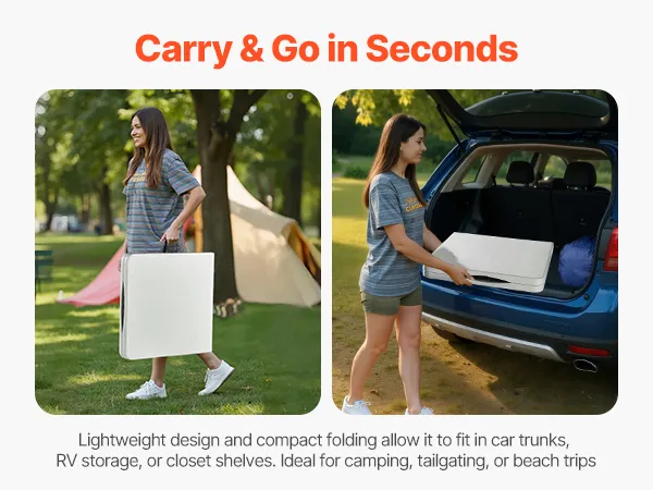 Fácil de guardar y transportar: La mesa de trabajo compacta es ligera y se pliega a 60 x 60 x 7 cm. El asa y la hebilla integradas permiten transportarla con una sola mano. Su diseño delgado cabe en maleteros, autocaravanas o garajes; no requiere montaje; se monta en segundos
