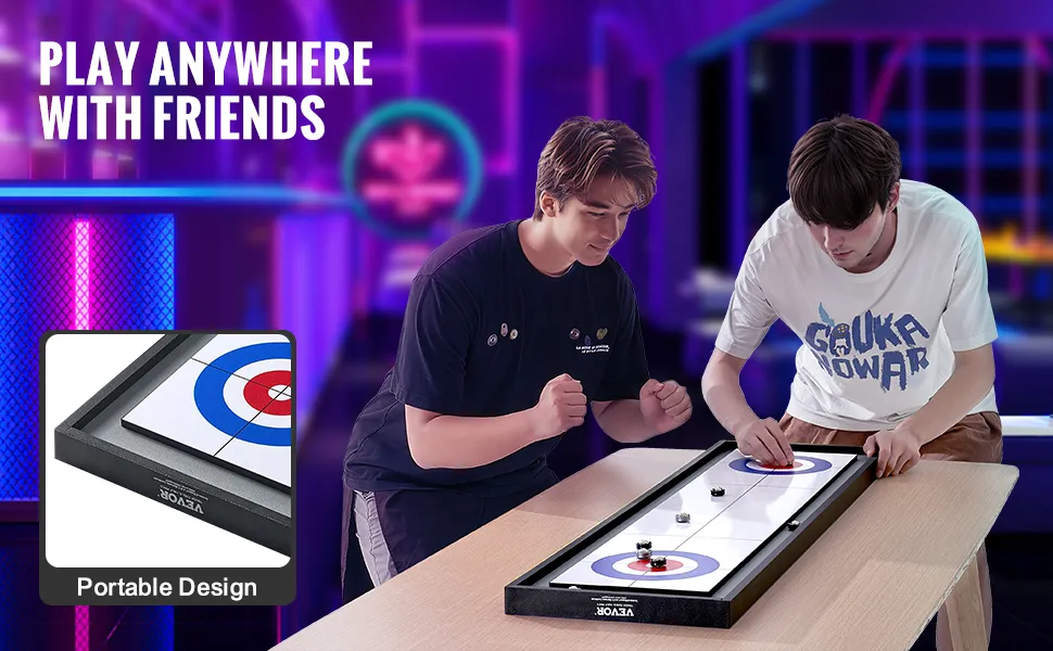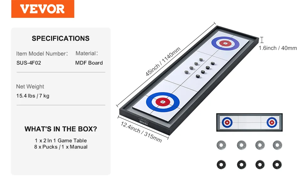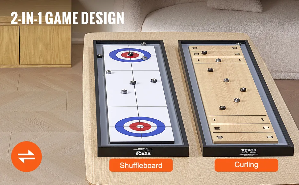 VEVOR Juego de Tejo y Curling 2 en 1 Juego de Tejo Portátil 114 x 31,5 cm Billar Holandés Tablero MDF de Doble Cara con 8 Discos Rodantes Juego de Mesa Bowling para Familia Amigos Fiesta Hogar