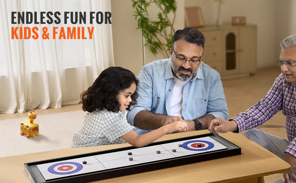 Tablero de juego de doble cara: Experimenta el doble de diversión con tu familia, con el tejo en un lado y el curling en el otro.
