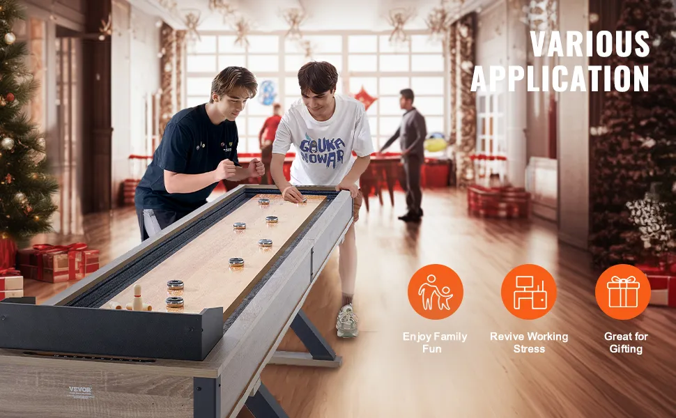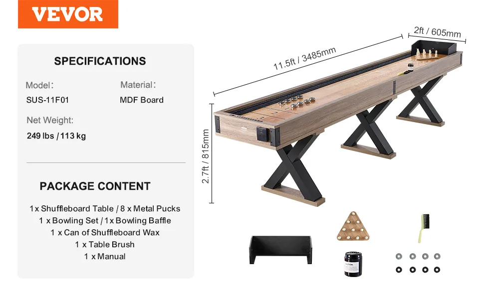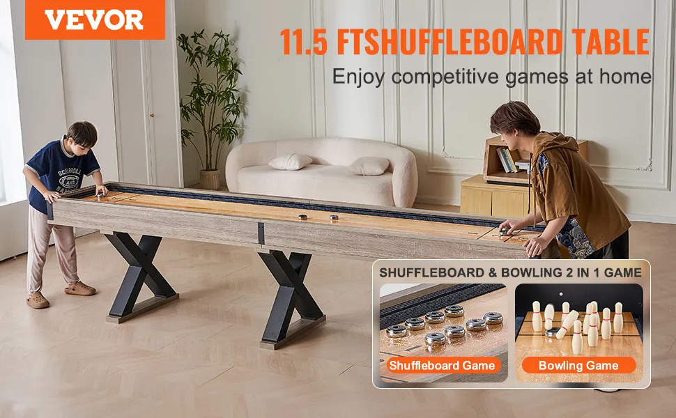 VEVOR Mesa de Tejo para Salas de Juegos Familiares, Juego Combinado de Tejo y Bolos 2 en 1, con Tablero Resistente a Arañazos, Patas en Forma X, 8 Discos, para Mesa, 3485 x 605 x 815 mm, Marrón
