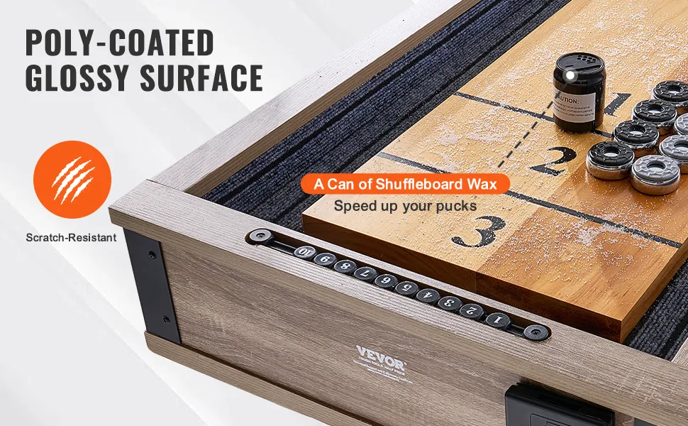 Superficie de juego brillante: Nuestra mesa de tejo cuenta con una superficie revestida de polietileno, lo que garantiza un movimiento del disco suave y rápido. El tablero brillante es resistente a los arañazos y mantiene su aspecto impecable incluso después de numerosas partidas
