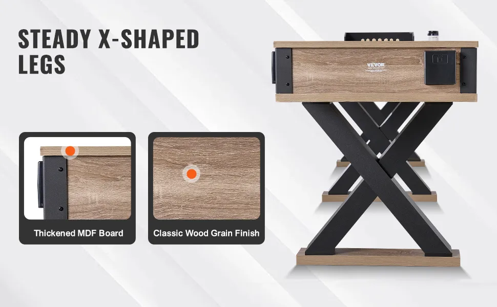Patas estables en forma de X: La mesa de tejo cuenta con un tablero de MDF grueso y patas en forma de X, lo que aumenta la estabilidad y la seguridad. Esta robusta construcción garantiza una experiencia de juego sólida, permitiéndote concentrarte en tu juego sin preocuparte por la estabilidad de la mesa
