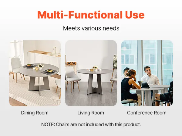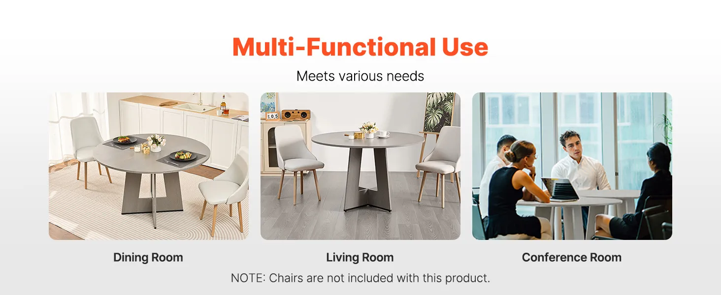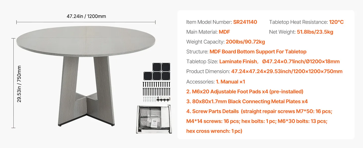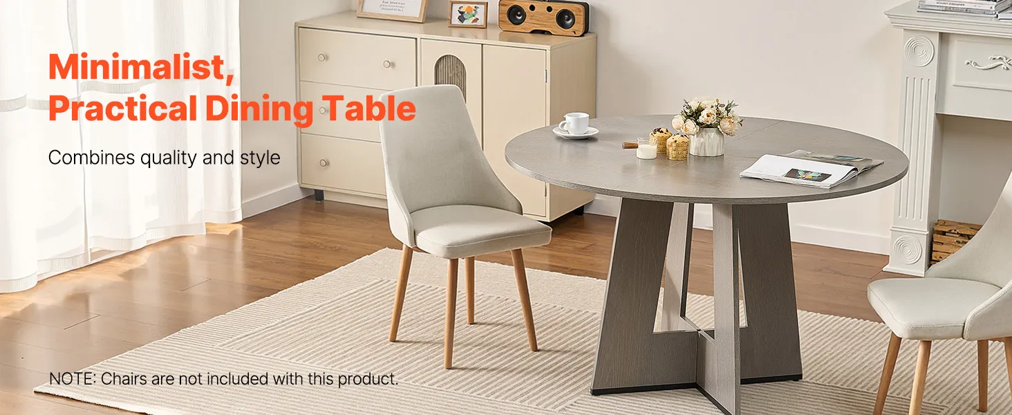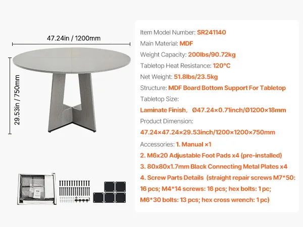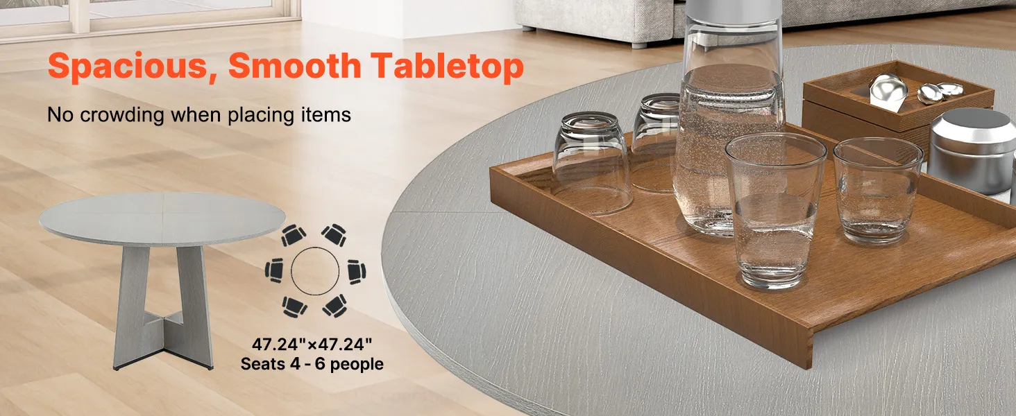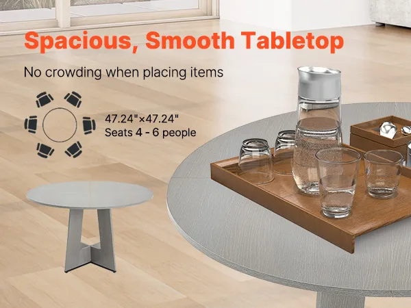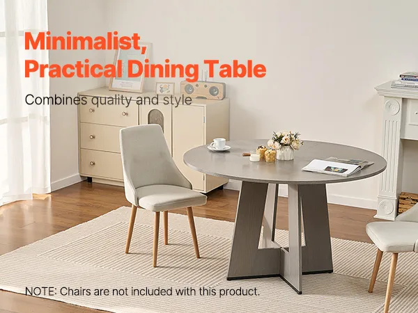 Mesa de comedor espaciosa: Esta mesa de comedor redonda tiene un diámetro de tablero de 120 cm, con un diseño compacto pero elegante que puede acomodar cómodamente de 2 a 4 personas, lo que la convierte en una opción ideal para espacios más pequeños. Su amplia superficie ofrece un amplio espacio de trabajo en un espacio limitado, lo que brinda comodidad y conveniencia para cenar, trabajar, leer o tener conversaciones informales